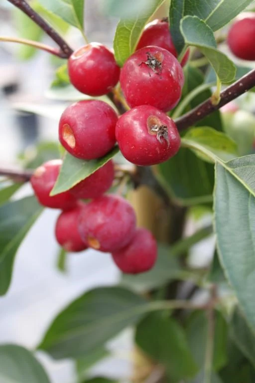 Dette paradisæble giver små, røde æbler som sidder i træet langt hen på vinteren.