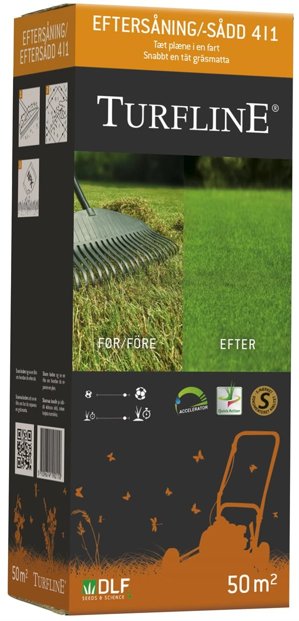 Vejen til en tæt, sund og flot græsplæne begynder med Turfline Eftersåning 4 i 1.